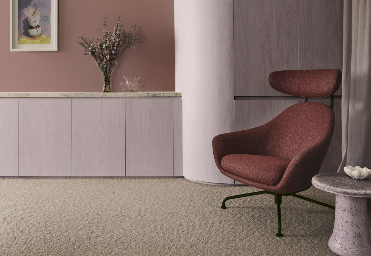 Featured against the ‘Savin’ wall, the Dopo Armchair by Arrmet brings a generous, grounded presence to the space. The swivel, self-aligning base adds a subtle sense of ease and movement.